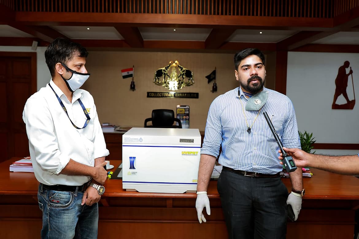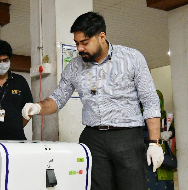 ഉപയോഗശൂന്യമായ മാസ്കുകൾ അണുവിമുക്തമാകാൻ ‘ബിൻ 19’ ഓട്ടോമാറ്റിക് സംവിധാനം കളക്ടറേറ്റിൽ സ്ഥാപിച്ചു. കൊച്ചി ആസ്ഥാനമായി പ്രവർത്തിക്കുന്ന വി.എസ്.ടി മൊബൈൽ സൊല്യൂഷൻ എന്ന സഥാപനമാണ് ഈ പദ്ധതി ആവിഷ്ക്കരിച്ചു നടപ്പിലാക്കിയിരിക്കുന്നത്. ജില്ലാ കളക്ടർ എസ്. സുഹാസ് ഉദ്ഘാടനം ചെയ്തു. തിരുവനതപുരം ശ്രീചിത്ര ഇൻസ്റ്റിട്യൂട്ടിന്റെ സാങ്കേതിക സഹായത്തോടെയാണ് സംവിധാനം ഒരുക്കിയത്. മാസ്കുകൾ യന്ത്രത്തിൽ നിക്ഷേപിക്കുന്നവർക് ഈ യന്ത്രത്തിൽ സ്പർശിക്കാതെ കൈകൾ സാനിറ്റൈസർ ഉപയോഗിച്ച ശുദ്ധീകരിക്കാനുള്ള സംവിധാനവും ‘ബിൻ 19’ ൽ ഉണ്ട്. ഇന്റര്നെറ്റ് ഓഫ് തിങ്സ് (ഐഒടി) സാങ്കേതിക വിദ്യയിലധിഷ്ഠിതമായ ഈ സംവിധാനം പൂര്ണ്ണമായും മനുഷ്യസ്പര്ശം ഏല്ക്കാത്ത തരത്തിലാണ് പ്രവര്ത്തിക്കുന്നത്. മുഖാവരണം അണുവിമുക്തമാക്കുന്ന പ്രക്രിയ പൂര്ണ്ണമായും ഓട്ടോമാറ്റിക് ആയാണ് നടക്കുന്നത്. ശ്രീചിത്ര ലാബില് നടത്തിയ സാങ്കേതിക പരിശോധനകള്ക്ക് ശേഷമാണ് ഈ സംവിധാനം കളക്ടറേറ്റിൽ സ്ഥാപിച്ചത്.