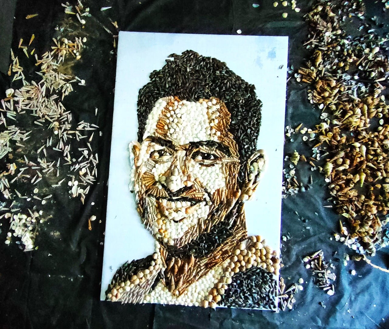 കടല് ഷെല്ലുകളിൽ വിരിഞ്ഞ ഒരു ധോണി ചിത്രം