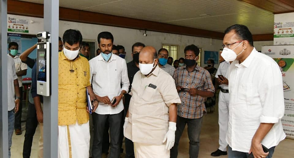 ജില്ലാ ഭരണ കേന്ദ്രമായ കാക്കനാട് സിവിൽ സ്റ്റേഷനിൽ കോവിഡ് പ്രതിരോധ പ്രവർത്തനങ്ങളുടെ ഭാഗമായി ഏർപ്പെടുത്തിയ ‘വാക് ത്രൂ ടെമ്പറേച്ചർ സ്കാനർ’ പൂർണതോതിൽ പ്രവർത്തനസജ്ജമായി. പദ്ധതിയുടെ ഉൽഘാടനം മന്ത്രി വി എസ് സുനിൽകുമാർ, കളക്ടർ എസ് സുഹാസ് എന്നിവർ ചേർന്ന് ഇന്നലെ നിർവഹിച്ചു. മനുഷ്യ ഇടപെടൽ ആവശ്യമില്ലാത്ത ഇത്തരം സ്കാനറുകൾ നിലവിൽ വിമാനത്താവളങ്ങളിൽ പ്രവർത്തിപ്പിച്ചു വരുന്നു. ഇതുവരെ കളക്ടറേറ്റിൽ ഹാൻഡ് സാനിറ്റീസിറും തെർമൽ സ്കാന്നറുകളുമാണ് ഉപയോഗിച്ച് പോരുന്നത്. പുതിയ സംവിധാനത്തിലൂടെ കടന്നു പോകുന്നവരുടെ മുഖം സ്കാൻ ചെയ്യപ്പെടുകയും താപനില അസാധാരമാവിധം ഉയർന്നിട്ടുണ്ടെങ്കിൽ അത് സ്ക്രീനിൽ വ്യക്തമാക്കുകയും അലറാം മുഴങ്ങുകയും ചെയ്യും. ഇത്തരത്തിൽ വാക് ത്രൂ ടെമ്പറേച്ചർ സ്കാനർ സ്ഥാപിക്കുന്ന സംസ്ഥാനത്തെ ആദ്യ സിവിൽസ്റ്റേഷനും എറണാകുളത്താണ്. കാമിയോ ഓട്ടോമേഷൻസ് എന്ന സ്ഥാപനമാണ് ഏകദേശം ഒന്നര ലക്ഷത്തോളം രൂപ വിലവരുന്ന സ്കാനർ സ്ഥാപിച്ചിരിക്കുന്നത്.