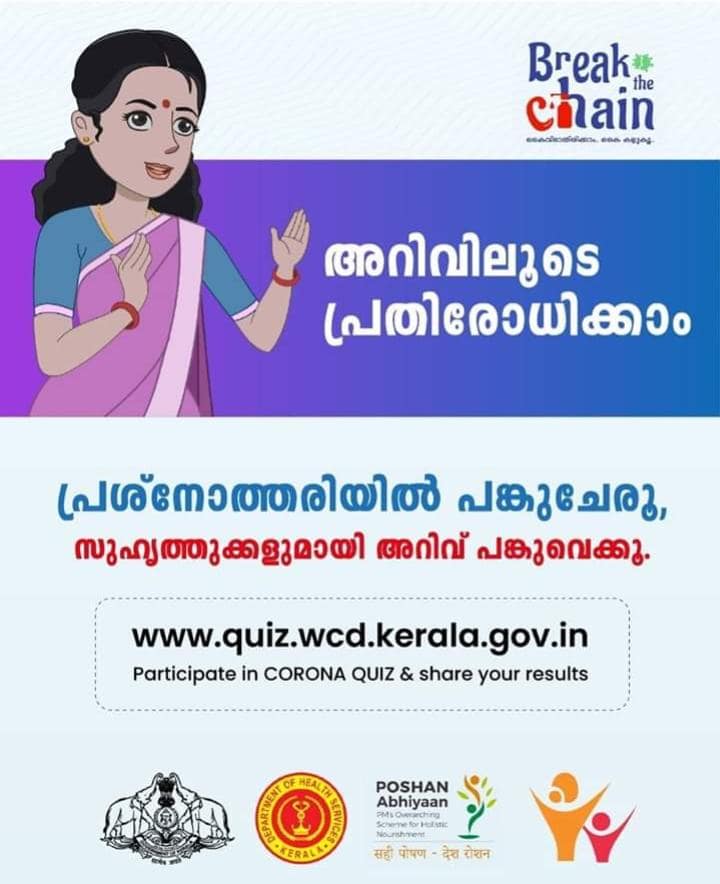 ക്വിസ്സും പോഷകാഹാര പാചകക്കുറിപ്പുകളുമായി വേറിട്ടൊരു മാതൃക നിർമ്മിച്ച് സംസ്ഥാന വനിതാ ശിശു വികസന വകുപ്പ്. വാട്സാപ്പ് വഴി ‘പോഷൺ വാണി’യിലൂടെ വകുപ്പിന്റെ നേതൃത്വത്തിൽ ബോധവത്കരണ സന്ദേശങ്ങൾ പ്രചരിപ്പിക്കുന്നതിനൊപ്പം അനിമേഷൻ എന്ന സാങ്കേതികവിദ്യ ഉപയോഗിച്ച് കൊറോണ പ്രചാരണവും അവർ നടത്തുന്നു. സാമൂഹ്യ മാധ്യമങ്ങൾ ആയ വാട്സാപ്പും ഫേസ്ബുക്കും വഴിയാണ് സന്ദേശങ്ങൾ പ്രചരിപ്പിക്കുന്നത്. അങ്കണവാടിയിലെ കുഞ്ഞുങ്ങൾ, മുലയൂട്ടുന്ന അമ്മമാർ, പ്രായമായവർ എന്നിവരെ കേന്ദ്രീകരിച്ചാണ് ആനിമേഷൻ പരമ്പര തയ്യാറാക്കിയിരിക്കുന്നത്. വീടുകളിലേക്ക് പോഷകാഹാരം എത്തിക്കുന്ന അങ്കണവാടി ജീവനക്കാരിയും കുഞ്ഞും കുഞ്ഞിന്റെ അമ്മയും തമ്മിൽ നടത്തുന്ന കൊറോണയെക്കുറിച്ചുള്ള സംഭാഷണങ്ങളാണ് അനിമേഷൻ രൂപത്തിൽ തയ്യാറാക്കിയത്. കൊറോണ കാലത്ത് ജനങ്ങൾ പാലിക്കേണ്ടതും ശ്രദ്ധിക്കേണ്ടതായ കാര്യങ്ങൾ ആനിമേഷനിലൂടെ ജനങ്ങളിലെത്തിക്കുക എന്നതാണ് ഈ പദ്ധതിയുടെ പ്രധാന ലക്ഷ്യം. തിരുവനന്തപുരം സി-ഡിറ്റ് ആണ് അനിമേഷൻ നിർമ്മിച്ചിരിക്കുന്നത്. കുട്ടികൾക്കുള്ള നിർദ്ദേശങ്ങൾ അവരുടെ പ്രിയപ്പെട്ട ആനിമേഷൻ കഥാപാത്രങ്ങളിലൂടെ നൽകിയാണ് കുട്ടികളിൽ ബോധവത്കരണം നടപ്പിലാക്കുന്നത്. കൊറോണയെപറ്റിയുള്ള പ്രാഥമിക കാര്യങ്ങൾ ജനങ്ങളിലെത്തിക്കാനാണ് ഓൺലൈൻ ക്വിസ് തയ്യാറാക്കിയിരിക്കുന്നത്. കൂടാതെ എളുപ്പത്തിൽ തയ്യാറാക്കാവുന്ന പോഷകാഹാരങ്ങളുടെ പാചകക്കുറിപ്പുകളും വകുപ്പ് ദിവസവും പുറത്തിറക്കുന്നുണ്ട്.