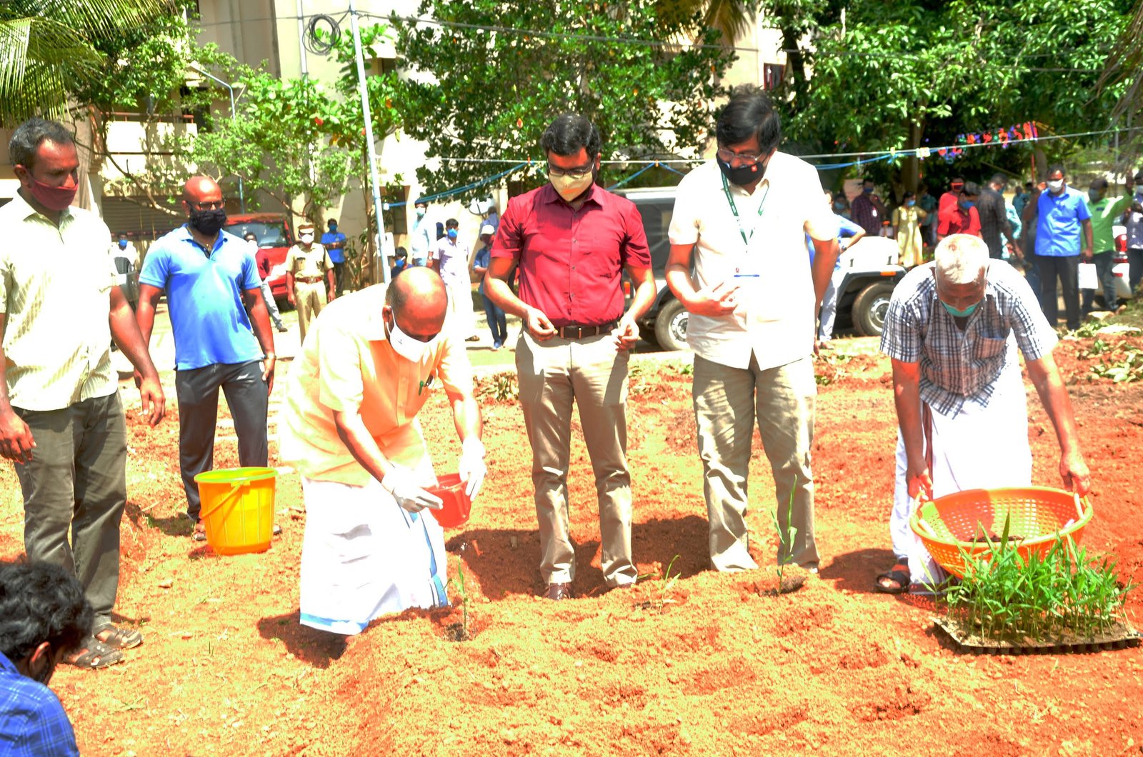 സംസ്ഥാനത്തിന്റെ ഭക്ഷ്യ സ്വയംപര്യാപ്തതക്കായി പ്രവർത്തിക്കണമെന്ന മുഖ്യമന്ത്രിയുടെ ആഹ്വാനത്തെ തുടർന്നാണ് കൃഷി. സിഎംഎഫ്ആർഐയുടെ തേവര കസ്തൂർബാനഗറിലുള്ള പാർപ്പിട സമുച്ഛയത്തിൽ നടക്കുന്ന കൃഷിക്ക് മന്ത്രി വി എസ് സുനിൽ കുമാർ തുടക്കം കുറിച്ചു. കൃഷിലോകം ക്ലബ്ബിന്റെ ഉദ്ഘാടനവും മന്ത്രി നിർവഹിച്ചു.
