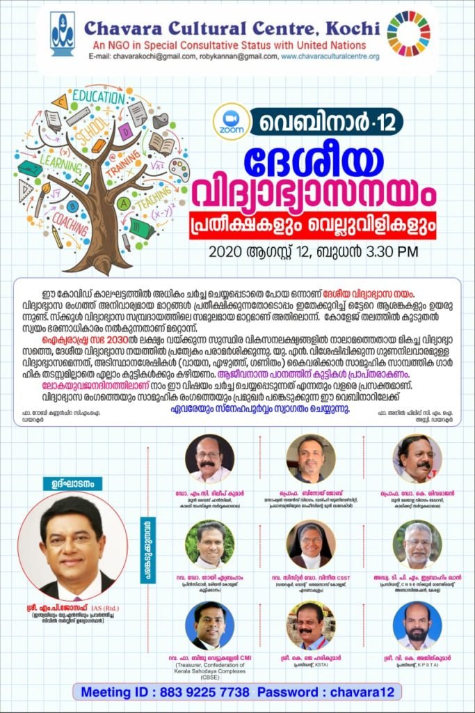 ചാവറ കൾച്ചറൽ സെന്റര് ഈ വിഷയത്തിൽ ആഗസ്ററ് 12 ബുധനാഴ്ച വൈകിട്ട് 3 .30 നു വെബിനാർ സംഘടിപ്പിക്കുന്നു.
