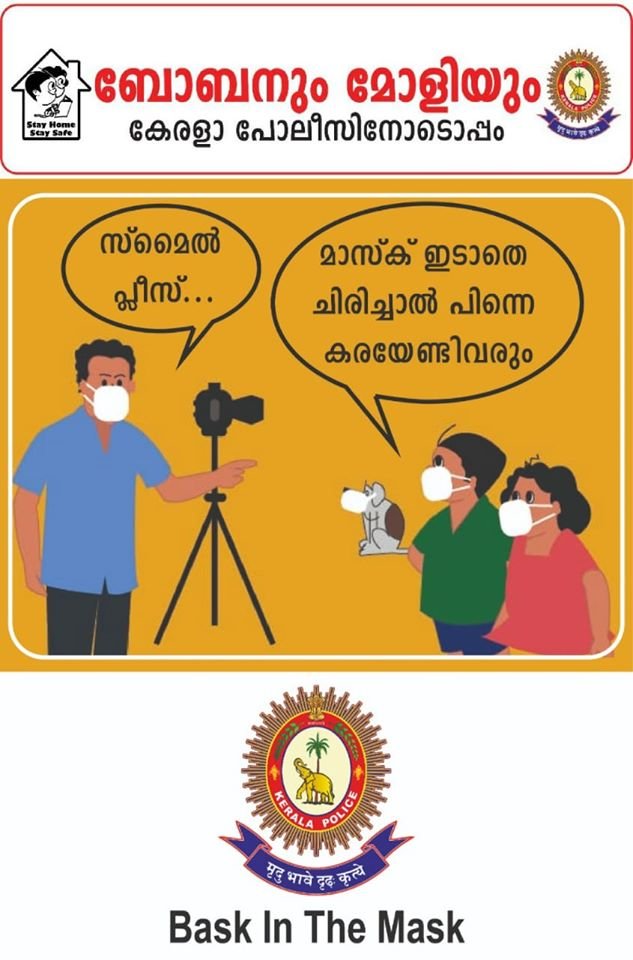കോവിഡ് പ്രതിരോധ പ്രവർത്തനങ്ങളുടെ ഭാഗമായി ജനങ്ങളെ സ്ഥിരമായി മാസ്ക് ധരിച്ചു നടക്കുവാൻ പ്രോത്സാഹിപ്പിക്കാനായി ഒരു ഓൺലൈൻ ചലൻജ്ജു് അവതരിപ്പിച്ചിരിക്കുകയാണ് കേരള പോലീസ്. പോലീസിന്റെ ഫേസ്ബുക് പേജിൽ #baskinTheMask എന്ന പേരിലുള്ള ഹാഷ് ടാഗിൽ ഓൺലൈൻ ക്യാമ്പയിന് ഇതിനകം സോഷ്യൽ മീഡിയയിൽ നല്ല പ്രതികരണമാണ് ലഭിച്ചുകൊണ്ടിരിക്കുന്നത്. കുടുംബാംഗങ്ങൾ മാസ്ക് ധരിച്ചു നിൽക്കുന്ന ഫാമിലി ഫോട്ടോയാണ് പേജിൽ പ്രസിദ്ധികരിക്കേണ്ടത്. പുതിയ ട്രെൻഡിലും, ഫാഷനിലുമുള്ള മാസ്കുകൾ ഉപയോഗിക്കാവുന്നതാണ്. മികച്ച ഫാമിലി മാസ്കിന് 5000 രൂപയും ആകർഷകമായ മാസ്കിന് 3000 രൂപയും സമ്മാനമായി ലഭിക്കും. ഇത്തരത്തിൽ എടുക്കുന്ന ഫോട്ടോകൾ kpsmc.pol @kerala.gov.in എന്ന ഇമെയിൽ വിലാസത്തിലോ 9497900440 എന്ന വാട്സാപ്പ് നമ്പറിലേക്കോ അയക്കാവുന്നതാണ്.