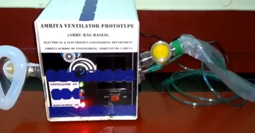 കൊറോണ വൈറസിന് എതിരായുള്ള പോരാട്ടത്തിൽ കുറഞ്ഞചിലവിൽ വെന്റിലേറ്റർ മാതൃക ( അമൃത വെന്റിലേറ്റർ) യുമായി അമൃത വിശ്വവിദ്യാപീഠം. അമൃതപുരി ക്യാമ്പസിലെ ഇലക്ട്രിക്കൽ ആൻഡ് ഇലക്ട്രോണിക്സ് വിഭാഗത്തിലെ സ്റ്റാഫ് അംഗങ്ങൾ എം.എസ് അഖിൽ, കെ ആർ ശ്രീഭരത്, ഡോക്ടർ മഞ്ജുള നായർ എന്നിവരാണ് കുറഞ്ഞചിലവിൽ വെന്റിലേറ്റർ മാതൃക രൂപപ്പെടുത്തിയത്.