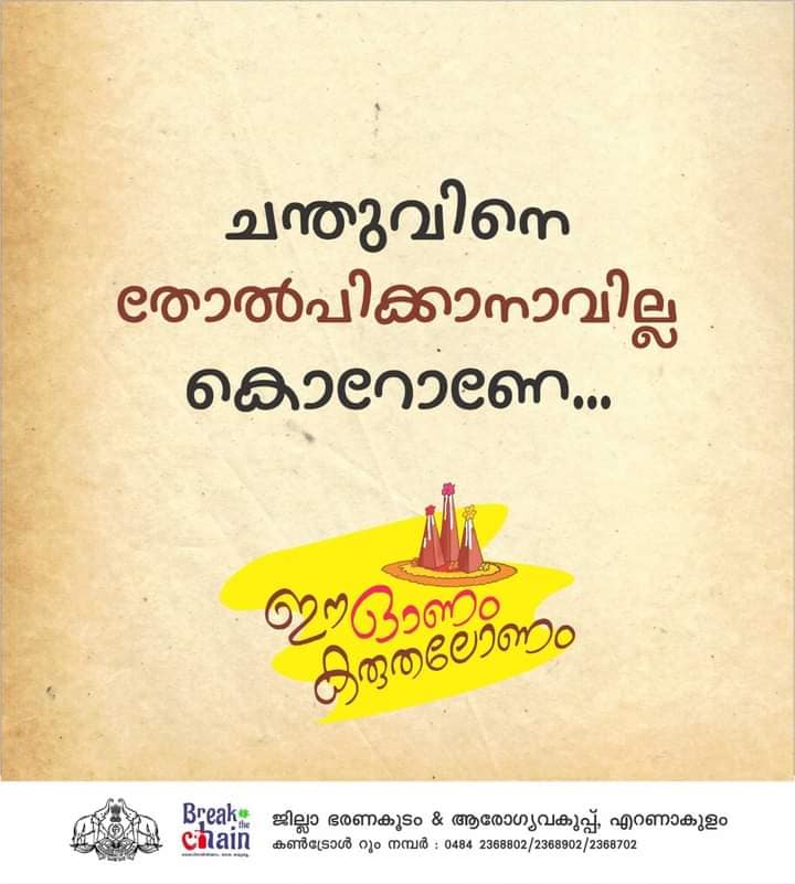 നാടെങ്ങും ഓണാഘാഷ തിരക്കുകളിൽ മുഴുകുമ്പോൾ, അല്പം ആശങ്കയോടെയാണ് ഇത്തവണത്തെ ഓണത്തെ മലയാളികൾ വരവേൽക്കുന്നത്. പെരുകുന്ന കോവിഡ് കണക്കുകളും ഉയർന്നു വരുന്ന പ്രതിദിന മരണനിരക്കുമാണ് ഈ ആശങ്കകൾക്കു പ്രധാന കാരണം. എന്നാലും വളരെ കരുതലോടെ മാത്രമേ ഓണാഘോഷങ്ങളിൽ പങ്കെടുക്കാവൂ എന്ന ഒരു നിർദ്ദേശമാണ് അധികൃതർ നൽകുന്നത്. ഇതൊനോടനുബന്ധിച്ചു എറണാകുളം ജില്ലാ ഭരണ കൂടം പുറത്തിറക്കിയിരിക്കുന്ന സന്ദേശങ്ങളിൽ നിറഞ്ഞു നിൽക്കുന്നത് പഴയ ക്ലാസിക് ചിത്രമായ ‘വടക്കൻ വീരഗാഥയിലെ’ ചന്തു ആണ്. ശ്രീ എം ടി വാസുദേവൻ നായർ എഴുതിയ പ്രശസ്ത ഡയലോഗുകൾ ചെറിയ ചില പരിഷ്കാരങ്ങളോടെയാണ് അവതരിപ്പിച്ചിരിക്കുന്നത്.