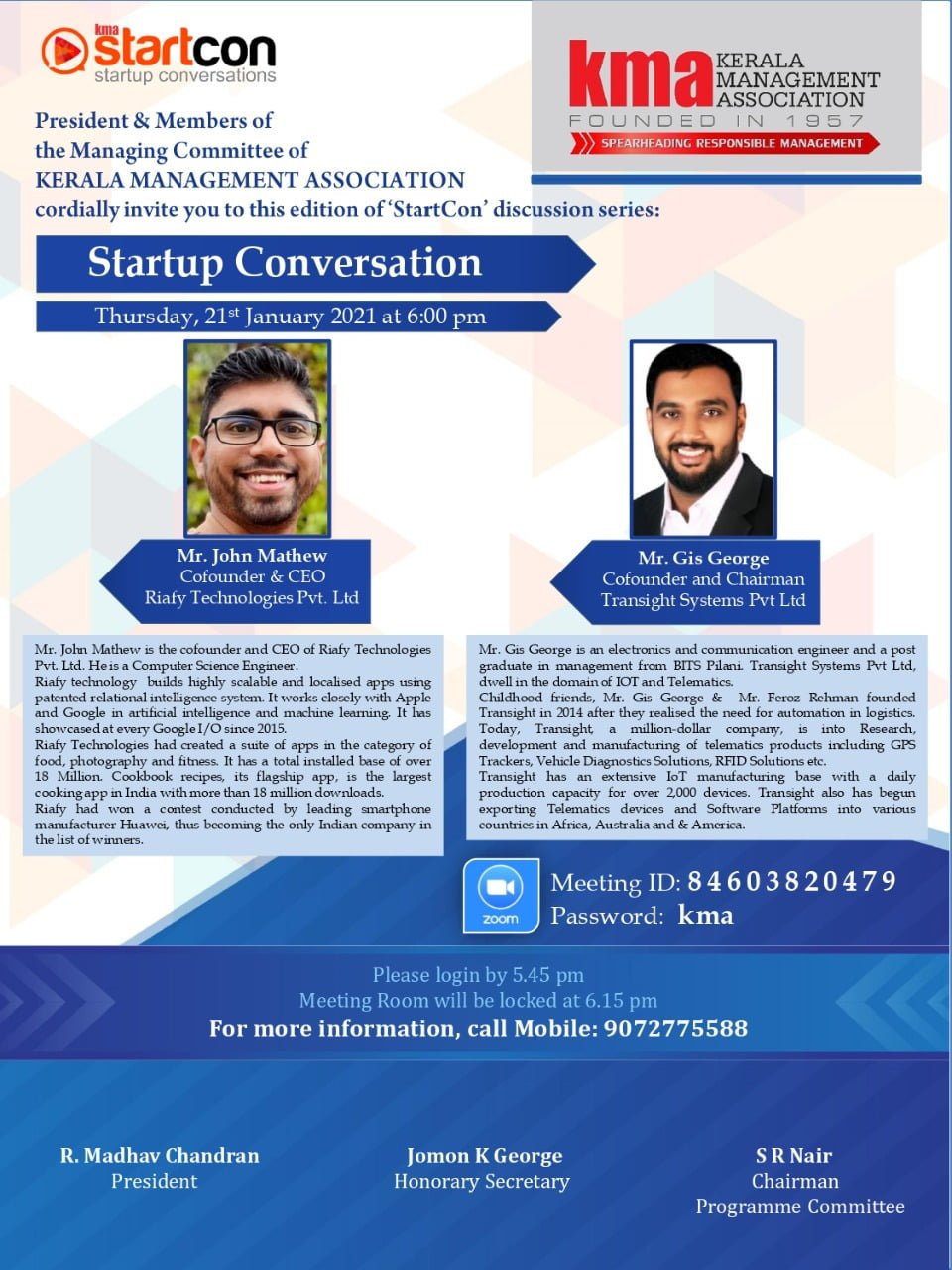 Speakers : Mr. John Mathew, Cofounder & CEO, Riafy Technologies Pvt. Ltd and Mr. Gis George, Cofounder and Chairman, Transight Systems Pvt Ltd