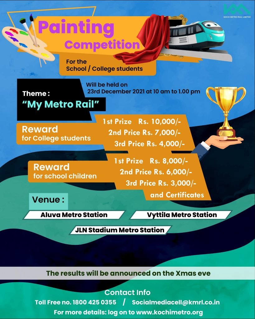 KMRL is organizing a Painting competition for the School/College students on the theme called “My Metro Rail”. There will be two categories :-
