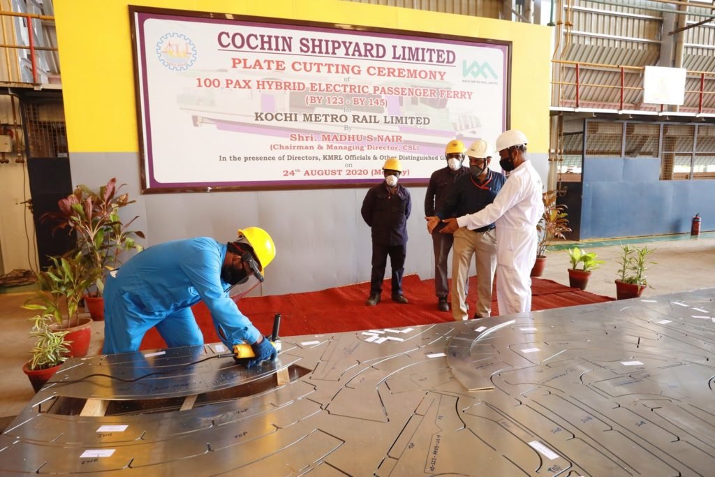 കൊച്ചിക്കാർ ഏറെ നാളുകളായി കേട്ടുകൊണ്ടിരിക്കുന്ന വാട്ടർ മെട്രോ എന്ന നൂതന ജല ഗതാഗത സംവിധാനത്തിന് കളമൊരുങ്ങുന്നു. വാട്ടർ മെട്രോയിലെ ആദ്യ ബോട്ടിൻറെ നിർമ്മാണം കഴിഞ്ഞ ദിവസം കൊച്ചിൻ ഷിപ്യാർഡിൽ ആരംഭിച്ചു. 100 പേർക്ക് യാത്ര ചെയ്യാവുന്ന ഇരട്ട അറകളുള്ള അലുമിനിയം ബോട്ടിന്റെ സ്റ്റീൽ കട്ടിങ് ചടങ്ങിൽ കെ എം ആർ എൽ എം ഡി അൽകേഷ് കുമാർ ശർമ്മ കൊച്ചിൻ ഷിപ്യാർഡ് ചെയർമാനും മാനേജിങ് ഡയറക്ടറും ആയ മധു എസ് നായർ എന്നിവർ പങ്കെടുത്തു. കോവിഡ് മാനദണ്ഡങ്ങൾ പാലിച്ചു നടന്ന ചടങ്ങിൽ ഇരു സ്ഥാപനങ്ങളിലെയും ഉയർന്ന ഉദ്യോഗസ്ഥരും സന്നിഹിതരായിരുന്നു. കൊച്ചി മെട്രോയുടെ അനുബന്ധ പദ്ധതി എന്ന നിലക്കാണ് കൊച്ചി മെട്രോ റെയിൽ ലിമിറ്റഡ് ജല മെട്രോ സർവീസ് ആരംഭിക്കുന്നത്. ഈ പദ്ധതി പ്രകാരം 100 പേർക്ക് യാത്ര ചെയ്യാവുന്ന 50 ബോട്ടുകളും 50 പേർക്ക് യാത്ര ചെയ്യാവുന്ന 23 ബോട്ടുകളുമാണ് നിർമ്മിക്കുന്നത്. രാജ്യത്തു ആദ്യമായിട്ടാണ് ബാറ്ററിയിൽ പ്രവർത്തിക്കുന്ന ബോട്ടിന്റെ നിർമ്മാണം നടക്കുന്നത്. ആദ്യ ബോട്ടിന്റെ നിർമ്മാണം ഈ വർഷം അവസാനത്തോടെ പൂർത്തീകരിക്കാനാകുമെന്നു ഷിപ്യാർഡ് ചെയർമാൻ വ്യക്തമാക്കി. അടുത്ത ഫെബ്രുവരിയിൽ ആരംഭിക്കാൻ ഉദ്ദേശിക്കുന്ന സർവീസുകൾ കൊച്ചിയിലെ പൊതു ഗതാഗത പ്രശനങ്ങൾക്കു വലിയൊളവിൽ പരിഹാരമാകുമന്നും തദ്ദേശീയ ടൂറിസത്തിനു പുത്തനുണർവേകുമെന്നും പ്രവചിക്കപെടുന്നു. ഏറെ കാലമായി ഉയർന്നു കേൾക്കുന്ന ഒരു വിഷയമായിരുന്നു കൊച്ചിയിലെ ജല പാതകൾ സഞ്ചാര യോഗ്യമാക്കി കൊണ്ടുള്ള പൊതു ഗതാഗത സംവിധാനം.
