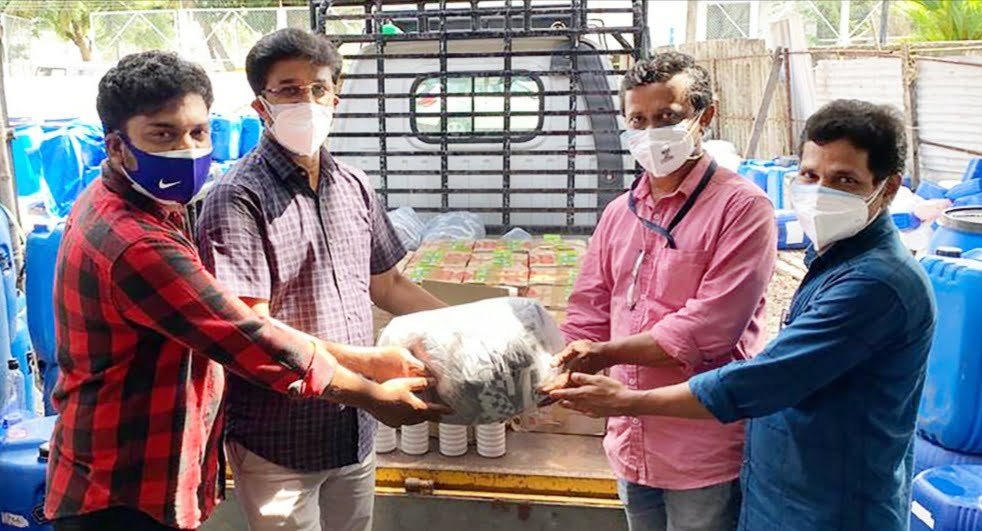 ഫോട്ടോ അടിക്കുറിപ്പ്: ചെല്ലാനത്തേക്ക് ലയൺസ് ക്ലബ് ഓഫ് കൊച്ചിൻ സൗത്ത് നൽകുന്ന ശുചീകരണ സാമഗ്രികൾ ലയൺസ് ക്ലബ് സോൺ ചെയർമാൻ ജോൺസൺ സി.എബ്രഹാം, ഡപ്യൂട്ടി തഹസിൽദാർ ആൻറണി ഹെർട്ടിസ് ന് കൈമാറുന്നു. കെന്നി അഗസ്റ്റിൻ, ജോളി പവേലിൽ എന്നിവർ സമീപം