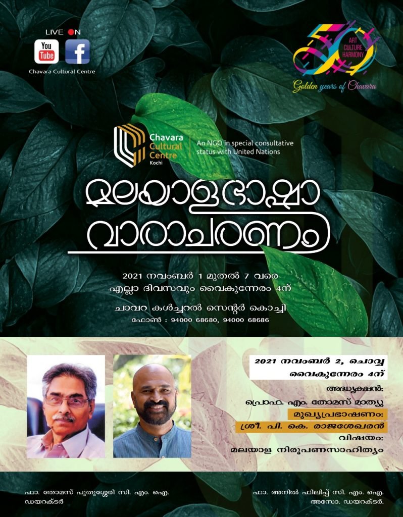 കേരള പിറവി ദിനത്തിൽ കൊച്ചി ചാവറ കൾച്ചറൽ സെന്ററിൽ ഒരാഴ്ച്ച നീണ്ടു നിൽക്കുന്ന മലയാള ഭാഷാവാരാചരണത്തിന്റെ ഉൽഘാടനം പ്രശസ്ത സിനിമ സംവിധായകൻ മധുപാല് നിർവഹിച്ചു മലയാളത്തില് ഇന്ന് മെട്രോ കാഴ്ചപാടുകള് ഉള്ള സിനിമയാണ് ഉണ്ടാവുന്നതെന്നും, വലിയ ഉള്ക്കാഴ്ച നല്കുന്ന മാധ്യമമാണ് സിനിമയെന്നും, മുന്പ് സിനിമ വലിയൊരു നെറ്റ് വര്ക്കായിരുന്നു. എന്നാല് ഇന്ന് നമ്മുടെ കൈകുമ്പിളില് നിന്ന് വരുന്ന മാധ്യമമാണ് സിനിമ. കേരള പിറവിയോടനുബന്ധിച്ച് ചാവറ കള്ച്ചറല് സെന്റര് സംഘടിപ്പിച്ച മലയാളഭാഷാവാരാചരണംഉദ്ഘാടനം ചെയ്തു സംസാരിക്കുകയായിരുന്നു അദ്ദേഹം. തിരക്കഥാകൃത്ത് ജോണ്പോള് അദ്ധ്യക്ഷത വഹിച്ച ചടങ്ങില് നാടക നടന് മരട് ജോസഫ്, എഴുത്തുകാരനും നാടകസംവിധായകനായ ടി. എം. എബ്രഹാം, സംവിധായകന് ശ്യാംധര്, ഫാ. തോമസ് പുതുശ്ശരി,ഫാ. അനില് ഫിലിപ്പ് എന്നിവര് പ്രസംഗിച്ചു. വേള്ഡ് ഓഫ് വിസിലേഴ്സ് അസോസിയേഷന് അവതരിപ്പിച്ച ‘വിസിലിംഗ് പെര്ഫോര്മന്സ്’ ഉണ്ടായിരുന്നു. നവംബർ ഏഴു വരെ എല്ലാ ദിവസവും വൈകിട്ട് 4 മണിക്ക് വിവിധ പരിപാടികൾ ഉണ്ടാകും.