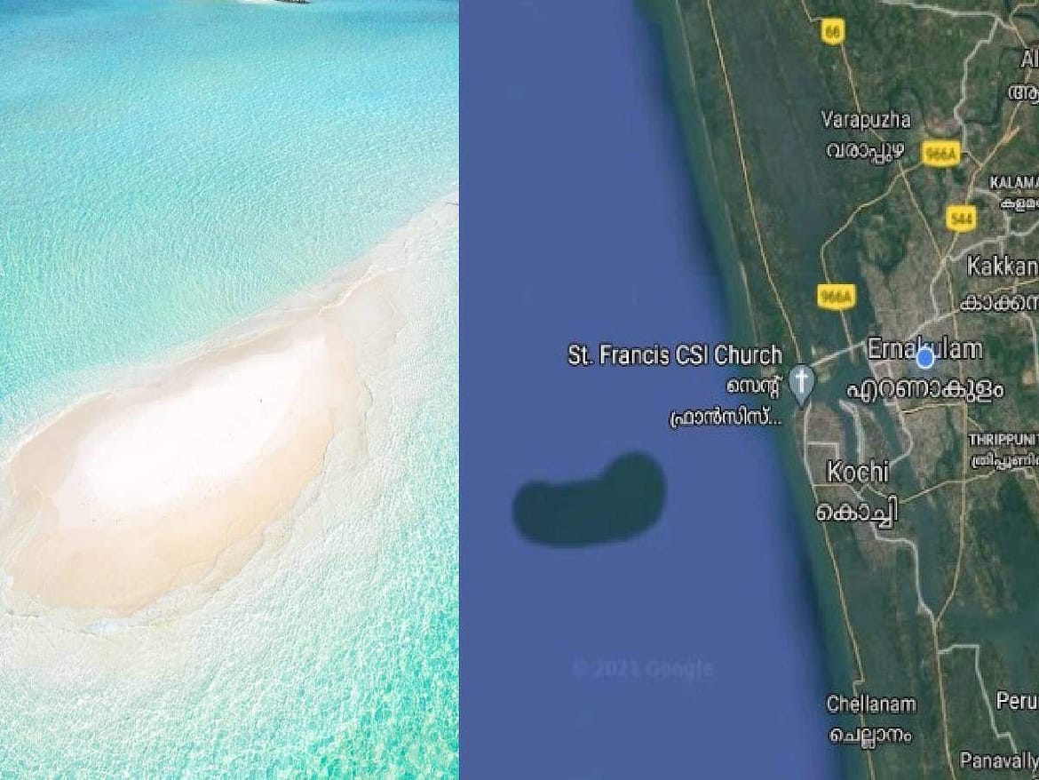 കൊച്ചി നഗരത്തിൽ നിന്ന് വിളിപ്പാടകലെ കടലിൽ ഒരു ദ്ദ്വീപിന് സമാനമായ രീതിയിൽ കൂറ്റൻ മണൽ തിട്ട രൂപപെട്ടുള്ളതായി വിദഗ്ദ്ധർ അനുമാനിക്കുന്നു. അഴിമുഖത്തിന് സമീപമായി ഒരു വലിയ മൈതാനം കണക്കെ മണൽത്തിട്ടയുള്ളതായി മത്സ്യത്തൊഴിലാളികളാണ് ആദ്യം സൂചന നൽകിയത്. കൊച്ചിയുടെ കടലോര മേഖലയുടെ ഉപഗ്രഹ ചിത്രവും ഈ വസ്തുത ഏതാണ്ട് സ്ഥീരീകരിക്കുന്നു. കൊച്ചിയിൽ നിന്ന് ഏഴു കിലോമീറ്റർ അകലെ കപ്പൽ ചാലിന് സമീപമാണ് പുതിയ മണൽത്തിട്ട കണ്ടെത്തിയിരിക്കുന്നത്. എട്ടു കിലോമീറ്റർ നീളവും മൂന്നര കിലോമീറ്റർ വീതിയുമുള്ള മണൽത്തിട്ടയാണെന്നാണ് പ്രാഥമിക നിഗമനം. കഴിഞ്ഞ വെറും നാലു വർഷ കാലയളവിനുളിൽ ആണ് ഈ മണൽത്തിട്ട കടലിൽ രൂപംപ്രാപിച്ചതെന്നു കരുതപ്പെടുന്നു. പുറമെ നിന്ന് നോക്കുമ്പോൾ കടലിനടിയിൽ ആയതിനാൽ എളുപ്പത്തിൽ ഇത് കാണാൻ സാധിക്കുകയില്ല. എന്നാൽ ഗൂഗിൾ എയർത്തിൽ ഇതിന്റെ ആകാശദൃശ്യം ലഭ്യമാണ്. വാർത്തകൾ പുറത്തു വന്നതിനു പിന്നാലെ ഇതിനെ സംബന്ധിച്ചു പഠനങ്ങൾ നടത്തുമെന്ന് ഫിഷറീസ് സമുദ്ര പഠന സർവകലാശാല അധികൃതർ അറിയിച്ചു. എന്നാൽ അങ്ങനെയൊരു പ്രതിഭാസം അവിടെയില്ലെന്നും ഗൂഗിൾ എയർത്തിൽ ഇപ്പോൾ കാണുന്നതിന് സമാനമായ ദൃശ്യങ്ങൾ 2014 ൽ ലും കാണപ്പെട്ടെന്നും പിന്നീട് ഇവ അപ്രത്യഷമായതായും കൊച്ചി തുറമുഖ അധികൃതർ പറയുന്നു.