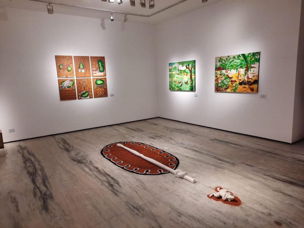 തന്യ എബ്രഹാമാണ് കുറേറ്റർ. ബി എസ് അനു, ബാലഗോപാലൻ, ഗോഡ്ഫ്രീ ദാസ്, ജോൺ ഡേവി, എസ് എൻ മനേഷ് ദേവ ശർമ, ഓ ജെ ദിലീപ്, കെ ആസ് പ്രകാശൻ, രാംദാസ് തോലിൽ, വി ജെ റോബർട്ട്, കെ കെ സനൂൽ, സുമേഷ് കമ്പളൂർ, സുരേഷ് രാമൻ എന്നിവരുടെ സൃഷ്ടികളാണ് പ്രദർശനത്തിലുള്ളത്.