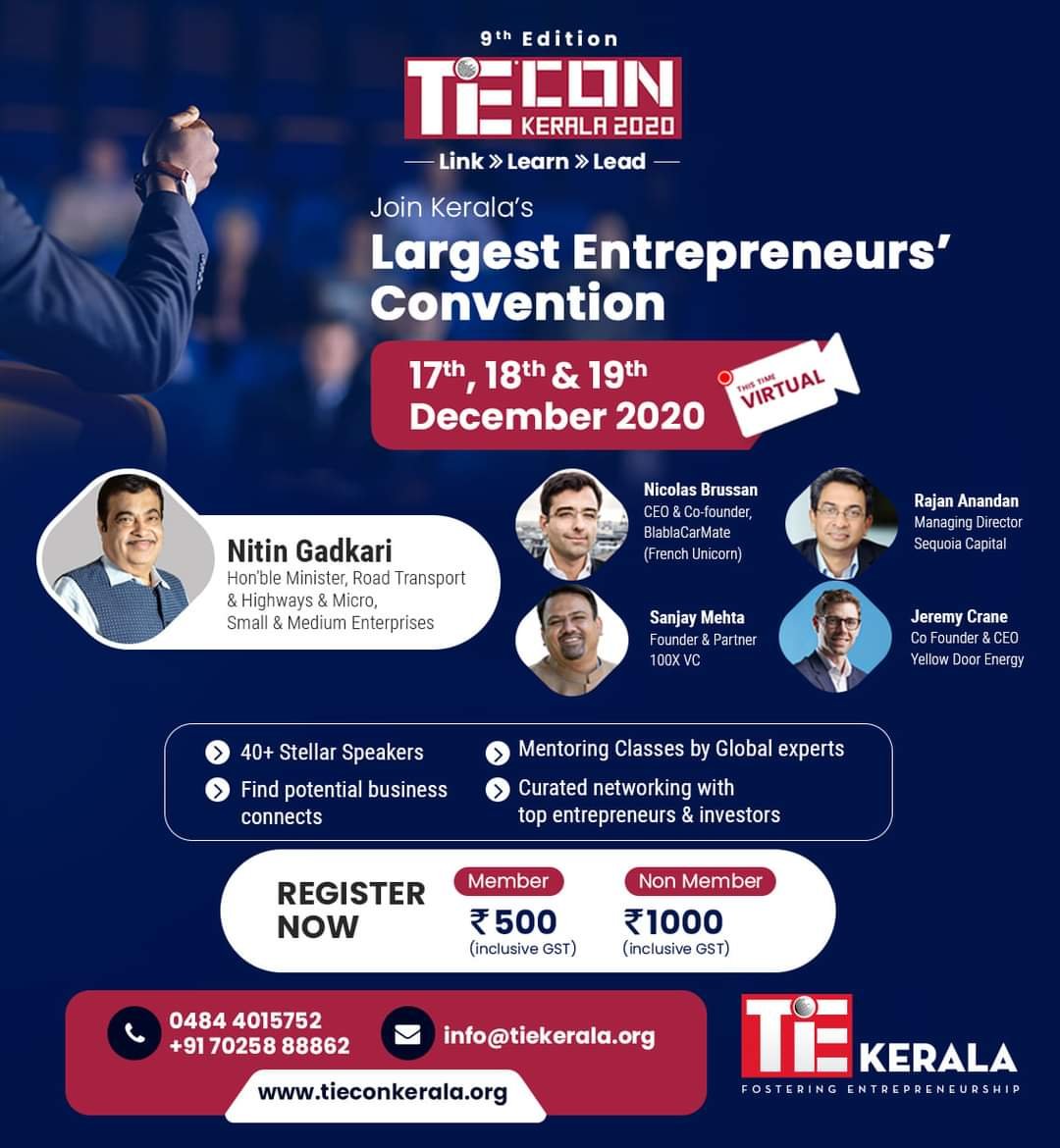 സംസ്ഥാനത്തെ ബിസിനസ് മേഖലയിലെ പ്രമുഖരെയും സംഭരഭകരെയും ആദരിക്കുന്നതിന്റെ ഭാഗമായി ടൈ കേരള ഏർപ്പെഉടുത്തിയിട്ടുള്ള അവാര്ഡുകൾക്കായി അപേക്ഷ ക്ഷണിച്ചു. കോവിഡ് ഉയർത്തുന്ന നിലവിലെ വെല്ലുവിളി കണക്കിലെടുത്ത് ഡിസംബർ 17 ,18 ,19 തീയതികളിൽ സംഭരംഭക സമ്മേളനമായ ടൈക്കോൺ വ്യർച്വൽ ആയി സഘടിപ്പിക്കും. തുടർന്ന് അവാർഡുകൾ പ്രഖാപിക്കും. സ്റ്റാർട്ടപ്പ് ഒൻട്രപ്രണർ ഓഫ് ദി ഇയർ, ഒൻട്രപ്രണർ ഓഫ് ദി ഇയർ, നെക്സ്റ്റ് ജനറേഷൻ അച്ചീവർ, എമർജിങ് ഒൻട്രപ്രണർ ഓഫ് ദി ഇയർ, ബിസിനസ് മോഡൽ/പ്രോസസ് ഇന്നവേഷൻ എന്നീ വിഭാഗങ്ങളിലാണ് അവാർഡെന്നു ടൈ കേരള പ്രസിഡന്റ് അജിത് മൂപ്പൻ പറഞ്ഞു.സമർപ്പിക്കപ്പെടുന്ന നോമിനേഷനു കളിൽ നിന്ന് സംരംഭകരുടെയും ബിസിനസ്സ് നേതാക്കളുടെയും ജൂറിയാണ് അന്തിമ തിരഞ്ഞെടുപ്പ് നടത്തുക. അവാർഡ് നേടിയ കമ്പനിയുടെ മുൻകാല പ്രകടനങ്ങളും അവാർഡ് തിരഞ്ഞെടുക്കുന്നതിന് പരിഗണനയിലുണ്ടാകും. അപേക്ഷകൾ സമർപ്പിക്കേണ്ട അവസാന തീയതി തീയതി 2020 നവംബർ 28 ആയിരിക്കും..https://tieconkerala.org/tiekerala-awards/ എന്ന സൈറ്റിൽ വിശദ വിവരങ്ങൾ ലഭ്യമാണ്.