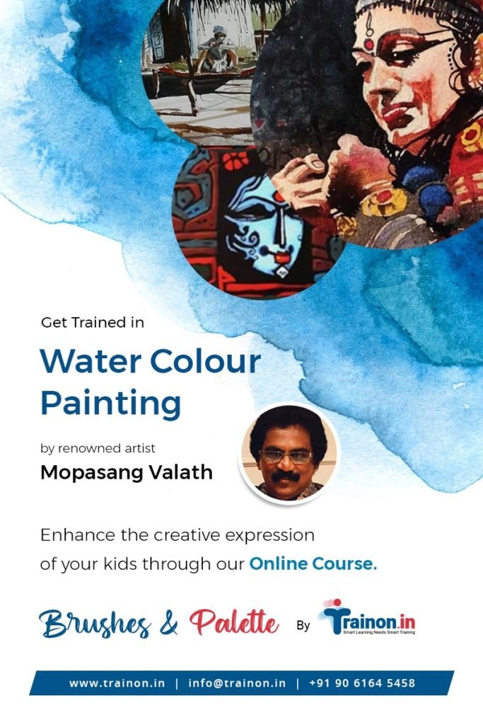 Learn to paint with watercolour in a creative, technical and fun filled atmosphere with our Online Painting Course. Curated and conducted by celebrated artist Mr. Mopasang Valath from Kochi, Kerala, you will get to learn different aspects of watercolours such as transparency levels, water controls, gradients and paint saturation as well as weight and precision needed to use brush with greater control from the master painter.