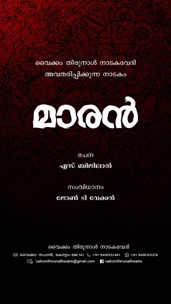 Home Events“മാരൻ” നാടകാവതരണവും ലോകനാടകദിനാചരണവും 27 ന് പി.ഒ.സി ഓഡിറ്റോറിയത്തിൽ
