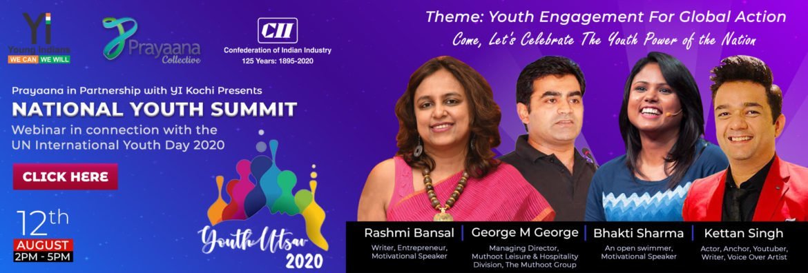 ഐക്യരാഷ്ട്ര സഭയുടെ അന്താരാഷ്ട്ര യുവജന ദിനത്തോടനുബന്ധിച് യങ് ഇന്ത്യൻസ് കൊച്ചി, പ്രയാണ ലാബ്സ്, വിഷിൽ.കോം എന്നിവർ സംയുക്തമായി സംഘടിപ്പിക്കുന്ന വെബ്ബിനാർ നാളെ നടക്കും. ‘ആഗോള മുന്നേറ്റത്തിൽ യുവാക്കളുടെ ഇടപെടൽ’ എന്നതാണ് മുഖ്യ വിഷയം. ഉച്ചക്ക് 2 മുതൽ 5 മണി വരെ നടക്കുന്ന ചർച്ചയിൽ പ്രമുഖ മാനേജ്മന്റ് വിദഗ്തയും എഴുത്തുകാരിയുമായ രശ്മി ബൻസാൽ, ഭക്തി ശർമ്മ, കേതൻ സിംഗ്, ജോർജ് എം ജോർജ് എന്നിവർ പങ്കെടുക്കും.